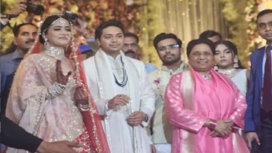 भतीजे आकाश आनंद को आशीर्वाद देने पहुंचीं मायावती